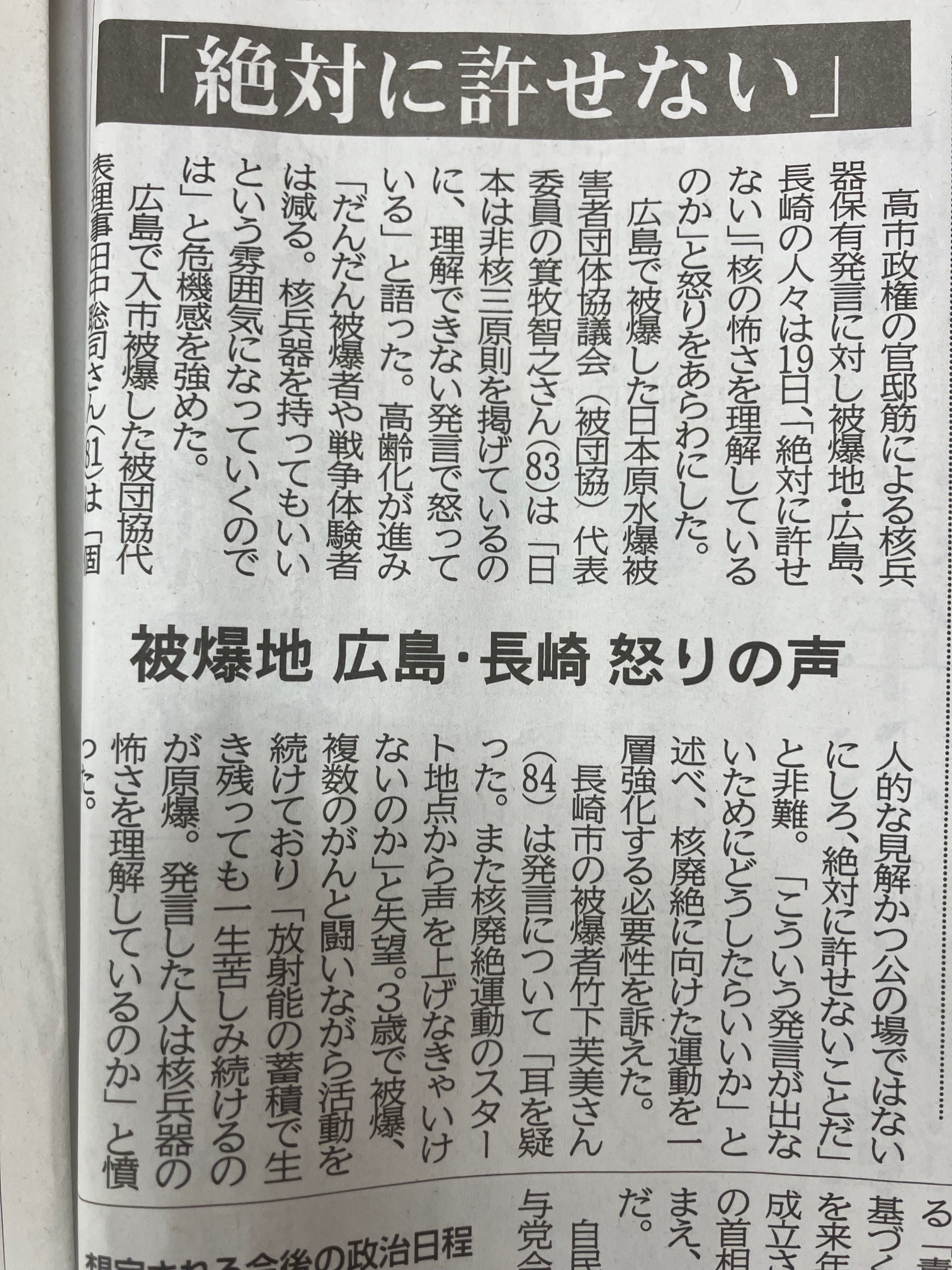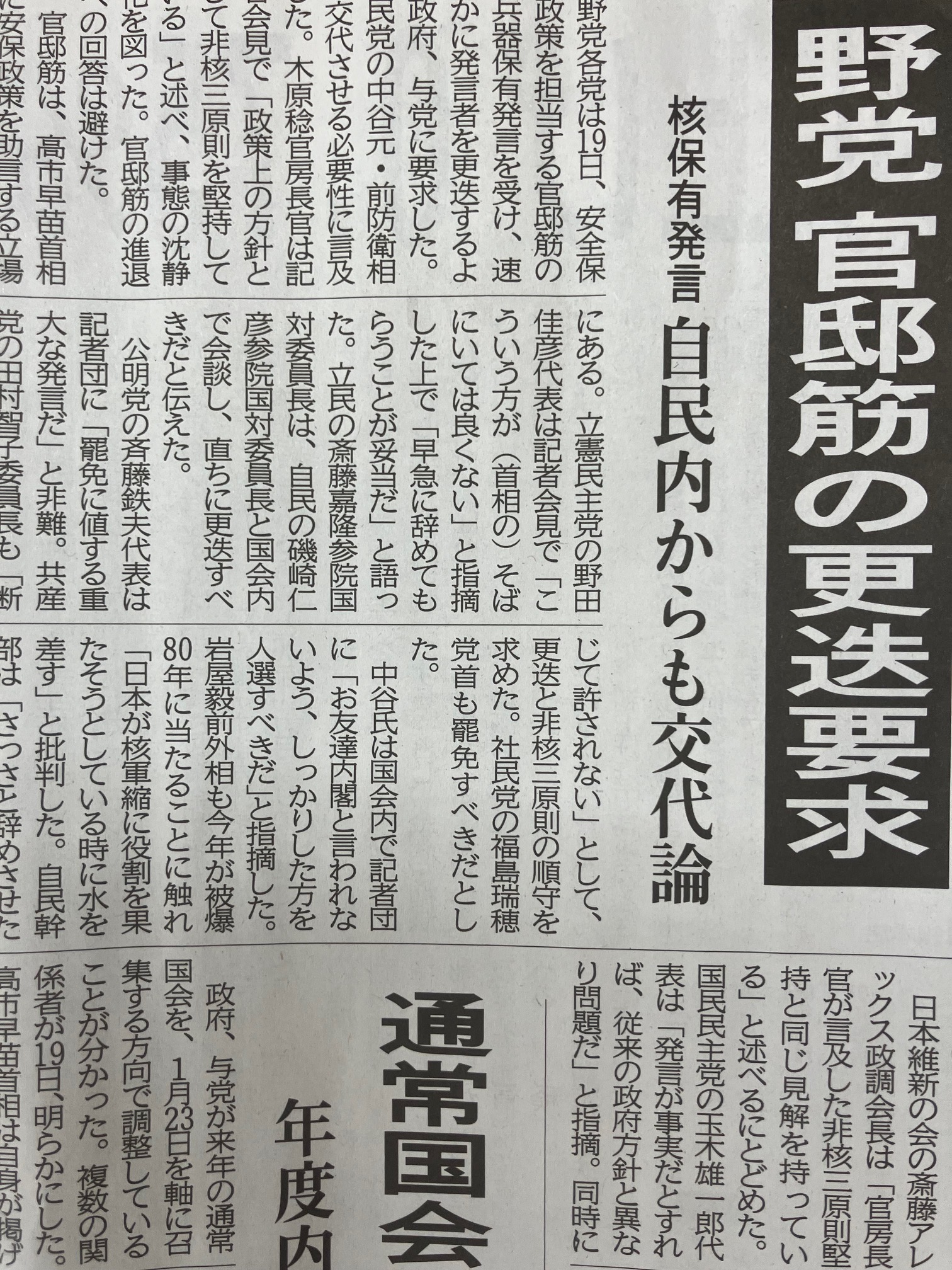 とんでもない話が飛び込んできた。高市政権が中国との問題でぎくしゃくしている時に総理を支える総理補佐官が、「日本は将来核を持つべきだ」とオフレコとは言いながら記者に向かって言及したと伝えられた。